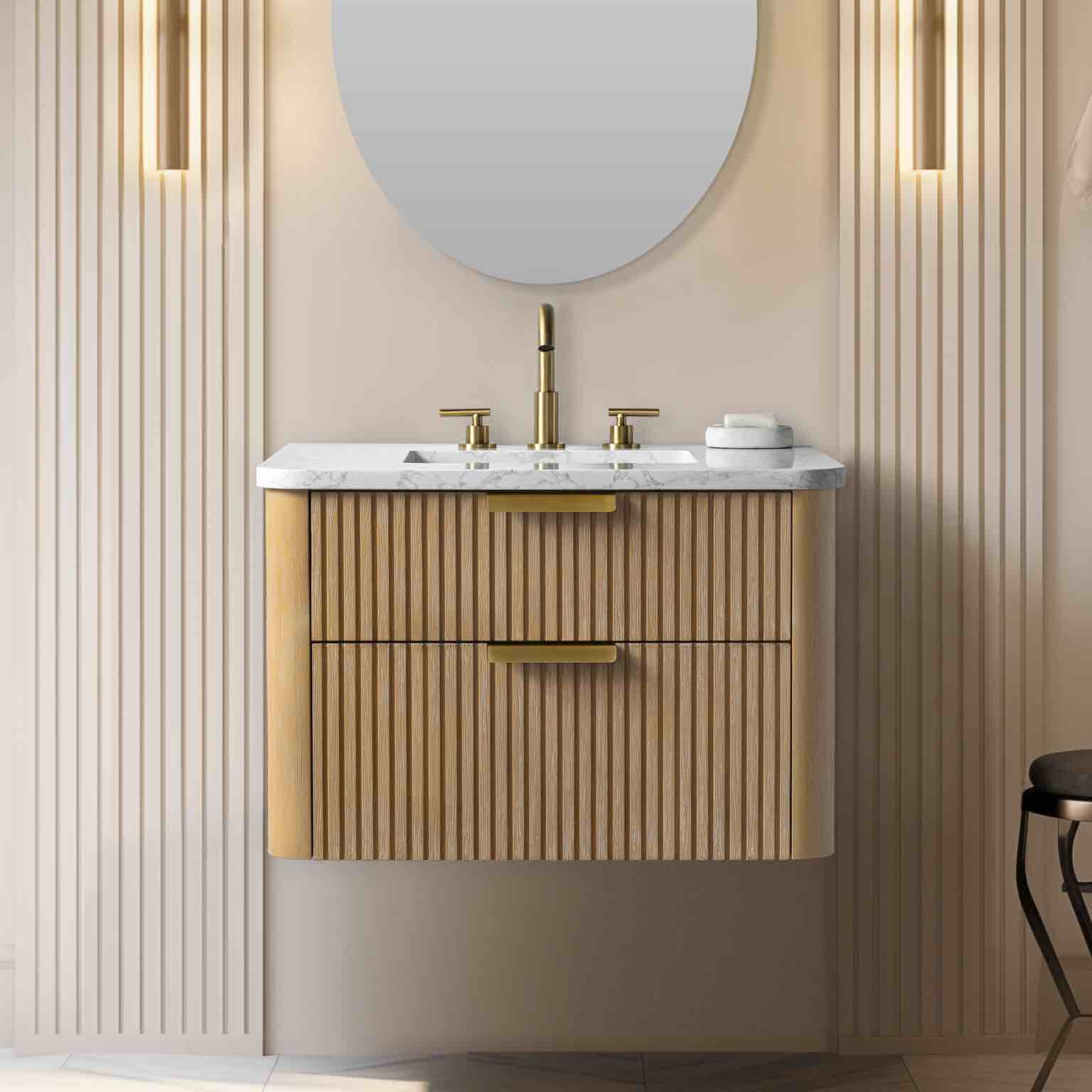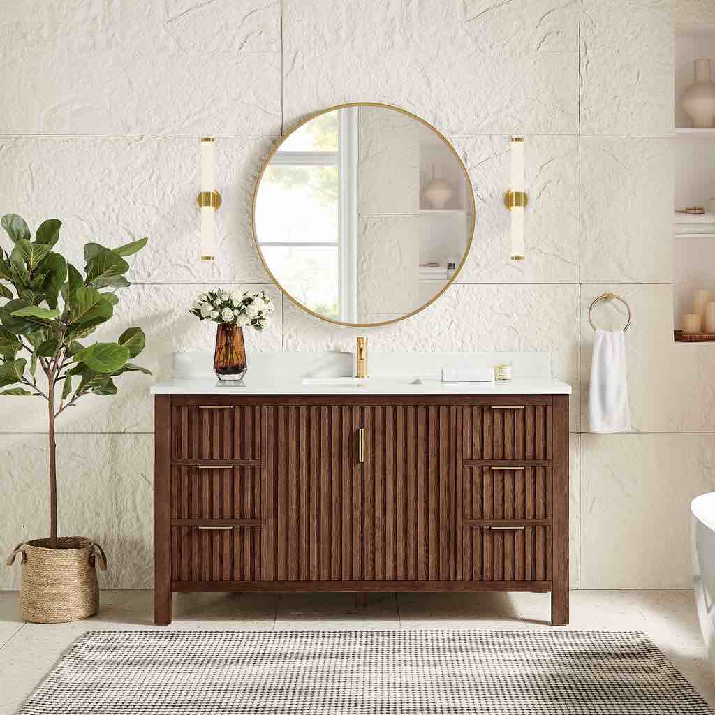 highbury furnishings havana 48" single bathroom vanity in reeded birch | quartz countertop