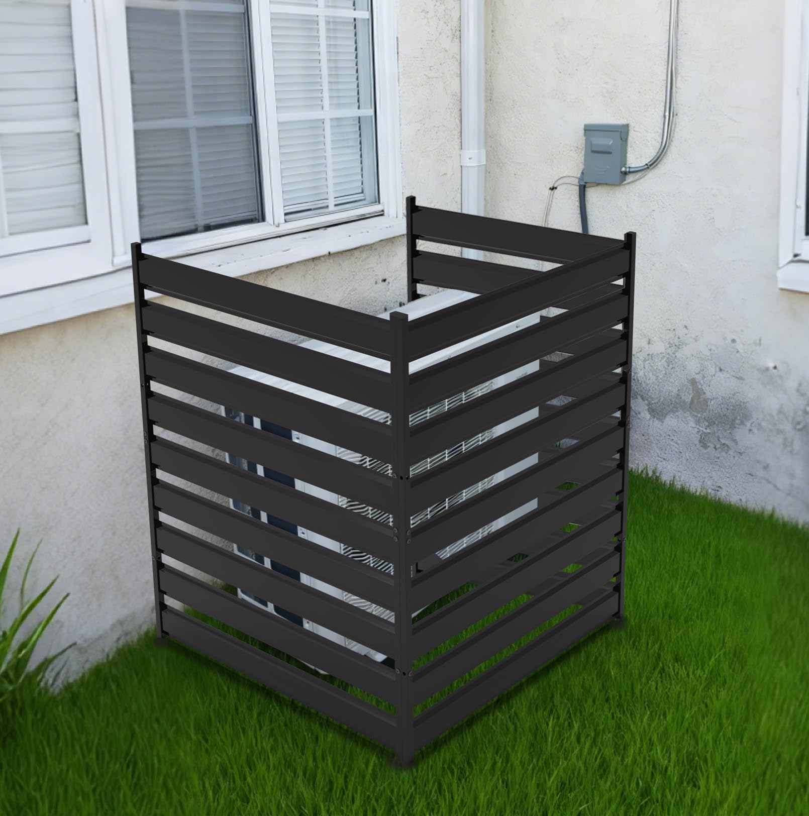 queen piper upholstered platform bed with horizontal paneled headboard, wooden slat support, no box spring needed, easy assembly, eco friendly packaging, dark grey