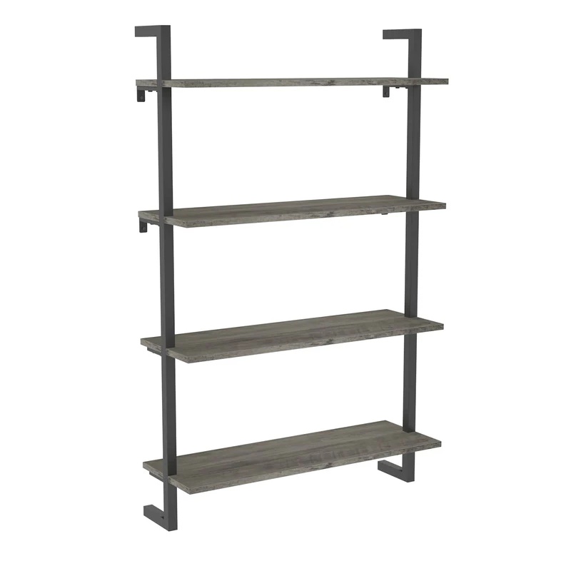 kiimeey 4-shelf bookshelf wall mount bookcase floating industrial color light gray